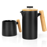 - ✅ Nordic Design - Features a beautiful blend of minimalism, traditional artisan skills and modern functionality, this French Press Set have been designed to stimulate the senses. Handmade from matt black stoneware by skilled craftsmen, this set is both rustic and elegant. For a touch of Asian culture, the lid and handle are made of bamboo. The simplicity of this set is restful to the eye.