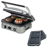 Cuisinart 5-in-1 Grill Griddler Panini Maker Bundle with Waffle Attachment (GR-4N) - Includes Grill and Waffle Plates (Renewed)