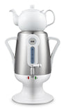Saki Electric kettle (3.2 l 110 V) Samovar Tea Maker with Porcelain Tea-Pot, Stainless-steel Infuser, Keep Warm Mode - Hot Water Heater - Brew tasty Green, Black, Turkish, Russian, Persian tea (White)