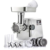 Details: Features a Locked Motor Wattage of 3000 Watts of Peak Output Power, 3 speeds (High, Low, Reverse) and a Circuit Breaker for Safety, Size No.12 Grinder, Not a Size No.5 or No.8 Like Smaller Grinders, 2-1/2 -Inch Diameter Output for Ground Meat and 2-Inch Diameter Feed Tube, Includes 3 Tempered Steel Grinding Plates (Fine, Medium, Coarse), 3 Stainless Steel Cutting Blades, 3 Piece Set of Sausage Tubes and Kubbe Attachment, Over 80,000 STX Grinders Have Been Sold Nationwide in the Last Seven Years While Maintaining an Incredible 99.8% Customer Approval Rate. All STX Products Include a 1 year - 100% - Fix or Replace Guarantee, Parts and Labor Included, Dimensions of Unit - Set Up - 19.0 Inches Front to Back by 8.0 Inches Wide by 14.0 Inches High. This Meat Grinder is intended to Grind Meat - This Grinder Will NOT Grind Bones