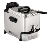 T-fal Deep Fryer with Basket, Stainless Steel, Easy to Clean Deep Fryer, Oil Filtration, 2.6-Pound, Silver, Model FR8000. Make restaurant-quality fried food at home—minus the hassle and mess—thanks to the Ultimate EZ Clean deep fryer by T-fal. Designed for family-size dinners or hors d'oeuvres when entertaining, the deep fryer offers a 3.5-liter oil capacity and a 2.65-pound fresh food capacity. Appetizers, main courses, or desserts—make the classics or let your creative inspirations soar. The powerful 1700-watt fryer’s adjustable thermostat allows for selecting the perfect cooking temperature for the specific food to be fried, while its quick-recovery heating system ensures crispy layers with minimal oil absorption for healthier results. When finished, the innovative machine’s exclusive oil-filtration system automatically drains and filters the remaining oil into a large plastic container below.For best results we recommend unsaturated vegetable oil. The removable, tightly sealed container conveniently stores the oil for future use, saving time and money. Other highlights include a two-position basket for cooking and draining food, a viewing window in the lid, cool-touch handles, a permanent odor filter to keep cooking odors out of the kitchen, and dishwasher-safe parts for quick cleanup. With the T-fal Ultimate EZ Clean deep fryer, frying delicious food at home just got a whole lot easier.