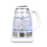 Details: The Tribest Glass Raw Tea Kettle is not your ordinary kettle. Its unique preset features make it the most advanced tea kettle on the market. Heat up water to your favorite temperature with the touch of a button, including a raw temperature that warms up to 115°F, or 45°C. The Glass Raw Tea Kettle's unique preset buttons allow you to set the kettle to your specific needs. Press "boil" to quickly and safely boil water. The auto-shutoff safety feature ensures safe use of the kettle by automatically shutting the kettle off when the water reaches boiling point.