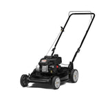 Details: Perfect your lawn with Yard Machines 140cc 21" 2-in-1 Push Lawn Mower. Powered by a 140cc engine with a recoil start and primer, this push lawn mower is equipped with both side discharge and mulching capabilities. It comes with a 21 inch cutting deck that allows you to mow wider areas of grass with fewer passes- perfect for small- or medium- sized yards. It is equipped with a dual lever that allows you to adjust the trimmings between 6 different heights. The durable 7 inch front wheels and 8 inch rear wheels are made with bar treading to allow you to effortlessly drive through hard or loose soil. Backed by a 2 year warranty.